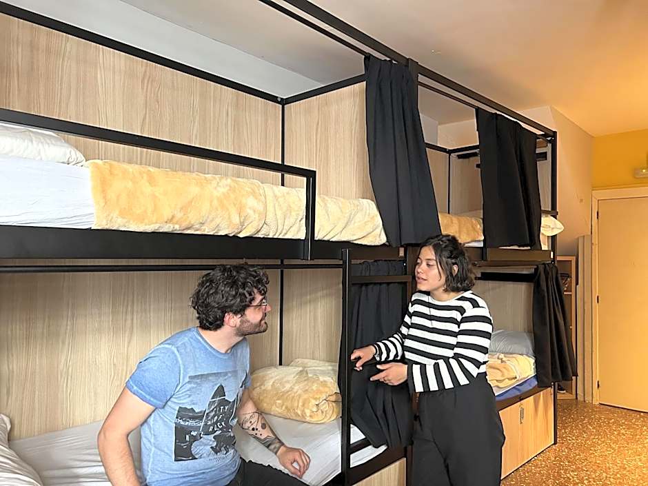 One bed in a bright, air-conditioned 8-bed dormitory with individual lockers and a shared bathroom with a hairdryer. Towels and bed linen are provided.